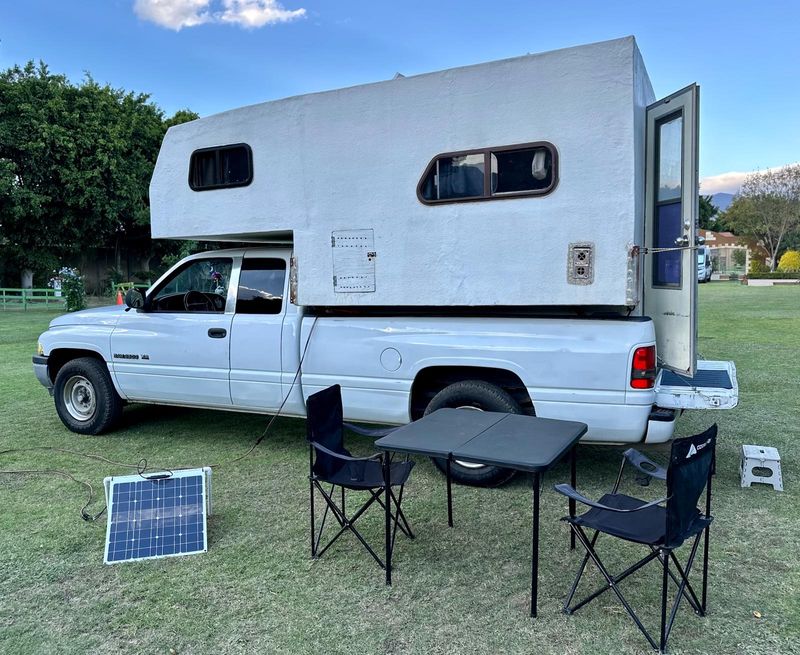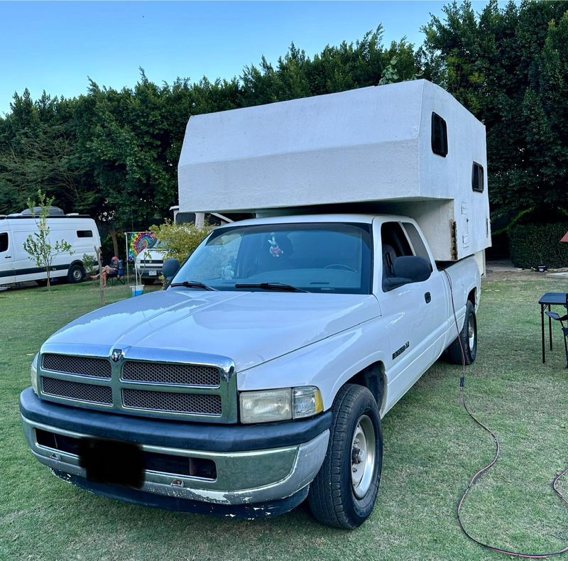 Truck: Strong engine with rear-wheel drive Clean title Smog done March 10th, 2023 Well mantained, all bills in hand Slide-in camper: Self-made in 2017 by the penultimate owner. Some improvements and renovation work done by us. Main building components are 2x2s and 2x4s. Covered with plywood and weather proofed with fibreglass. Every piece of wood has been treated with wood preservant and put together with glue, screws and hardware. Insulated with professionally-applied closed-cell spray foam. 4 inches on the floor and roof, 2 inches on the walls. Very strong and well insulated for heat/cold and noise. Portable fan and propane heater. Weight: approx. 1800lbs Bottom dimensions: 96" long and 48.5" wide. Fits 8 foot bed truck with tailgate closed. Stove: Suburban - propane - 3 burners with oven 2 x 20lbs propane bottles located in a safe and separate vented compartment walled off from interior. Electric System: 150 Watt portable solar panels. Voltage sensitive relay, battery charge from the alternator while driving (new 06/2023). 110 Ah deep cycle AGM battery (new 06/2023). Charge controller, fuse box, inverter. Dimmable LED lights. Fridge 55L Euhomy 12 V/110V running 24/7 on 12V with the electric setup. Sink, 10 gal. water tank + 6 gal. water can + 3 gal. water can + 6 gal. grey water can outside. Water container 5 gal. for portable water incl. pump. Mobile 12V outside shower Real Queen sized mattress, 2 pillows, 2 pillowcases, blanket, bed cover (newly bought in October 23) Sofa where can sleep a 6 foot tall person (covers and curtains custom made in December 23) Four windows and two roof windows all with mosquito nets. Lockable door also with window and mosquito net. Storage: Plenty of storage below sofa and step to bed, dresser, two drawers for food and kitchenware, pantry/shelf in kitchen, library Kitchen utensils, plenty of food containers, baskets, blender, barbecue etc. Camping table 34W x 34D x 28H and two camping chairs Miscellaneous: Fairy lights indoor and outdoor, laptop holder above bed, many hooks and brackets, fire and gas detector, yoga mat, tool box, hammock, hand vacuum cleaner, hose (7m).