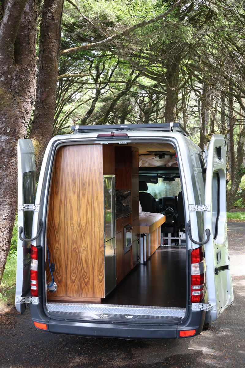 2012 Freightliner Sprinter 2500 (Mercedes NCV3) camper van conversion with gourmet kitchen, queen size bed AND a cot; purpose-built for extended outings for three people! Built at the Mercedes plant in Germany. VAN High Roof 170EXT 3.0L Turbodiesel Recent B Service, not due again for ~18000 mi! Tow hitch included Koni Shocks Chains for skiing! Heated seats also for skiing KITCHEN Diesel-powered oven for making cookies and frozen meals Super large stainless marine refrigerator/freezer Diesel cook top doubles as cabin heater Oven and heater can be used while in motion (marine) – have a warm meal ready when you get there Full sink with water pump POWER 420W of solar 50A DC-DC converter; trickle charges start battery when house battery is full 3600 Wh of LiFePO4 batteries New start battery with 3-yr warranty Discreet shore power hookup 2000W pure sine wave inverter so you can work remote Victron Energy shore power and solar charger communicate to optimize charging and also look after low battery state–worry free! LIVING Sweet Maxxair Maxxfan Bose speakers Bench seat folds down into queen size bed with memory foam mattress, plus room for a cot * open the side door and put up the bug screens for a great view from bed while you drink your coffee DOT approved seats and seat belts for three (bring your little) Brand new cassette toilet Heated outdoor shower Full bug screens Magnetic window covers Beautiful wood paneling (also insulated) Diesel heater/cook top so you don’t have to get propane separately Rugs So many great features on this beautiful build!