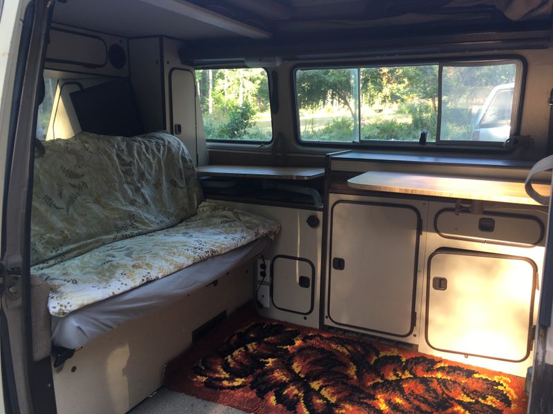 In 1984 a special limited edition Wolfsburg Vanagon Westfalia Camper was released for the USA and Canadian markets. This limited edition model had a higher specification than the standard model and was identifiable by its exterior two tone paint and Wolfsburg badging. The 1984 VW Westfalia Vanagon Camper Wolfsburg Limited Edition layout consisted of: 1) Combination cupboard 87 cm wide x 45 cm deep on the left behind the drivers seat with sink, two flame LP gas cooker with splash plate. The splash plate folds down and can be used to drain dishes after washing. Also the unit has a cutlery draw, a large cupboard for tableware and the fridge. 2) Cupboard unit with 10.5 US Gallon (40 litre) integrated freshwater tank. 3) Wardrobe (with mirror on inside of door) and storage unit with 3 shelves over the engine bay. 4) Roof locker below roof bed. 5) Cushion 120 cm wide over the engine bay. 6) 3/4 width rock n roll bed for 2 persons (bed is 188 cm x 120 cm when folded out) with bedding storage area under seat. 7) Rear table on swinging arm (80 cm x 40 cm) with dark brown surface finish and dark brown edging trim. 8) Front table on swinging arm (60 cm x 40 cm) with dark brown surface finish and dark brown edging trim. Photo shows detailed layout. This Vanagon has some wear and tear and needs some TLC to restore it back to its former glory. There are 169,000 original miles on it. The engine is in good running condition, but will need to be serviced soon. It has the original engine and is manual transmission. Tires will need to be replaced. This van was bought as a fixer-upper project, but there hasn't been time to work on it and now we've changed our camper plans. This Vanagon is NOT one of those fully equipped, road-ready vans with all the extra features. This is a rough draft of your dream camper van. This is also a very rare edition, with the pop-up and third seat. It's a wonderful foundation for a camper van and affordably priced. You could easily use the rest of your budget to fix it up and get it back to its former glory, or go a totally different direction. It's basically a blank canvas for the new owners to paint their dream camper van! https://westfaliat3.info/html/westfalia_1984_vanagon_camper_wolfsburg_special_edition.html