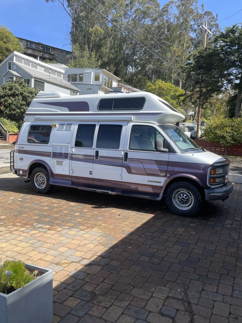 Well maintained 1998 GMC 3500 Campervan. This RV is easy to drive and has it all: stove, bathroom, table, easily accessible bed & cabinets, overhead bunk, folding cargo carrier basket on back of van for extra storage, moon roof, water heater, rooftop AC, and more . Extremely LOW miles for the year - 104,500. 16 MPG. I'm selling it because I want to start traveling by airplane and will have no need for it. It's ready for some new adventures and to become someone else's beloved home on the road. Upgrades include: Heat package, TV, DVD Player, stereo - Sirius XM ready, Bluetooth capable, can connect to phones, kitchen sink faucet hose, wood floors, new 12 volt cigarette lighter installed, AC Unit, solar panels, cargo carrier, seat covers, back up camera $13,000 or best offer Clean title no accidents. Please text [contact info removed] with questions or to schedule to come see it.